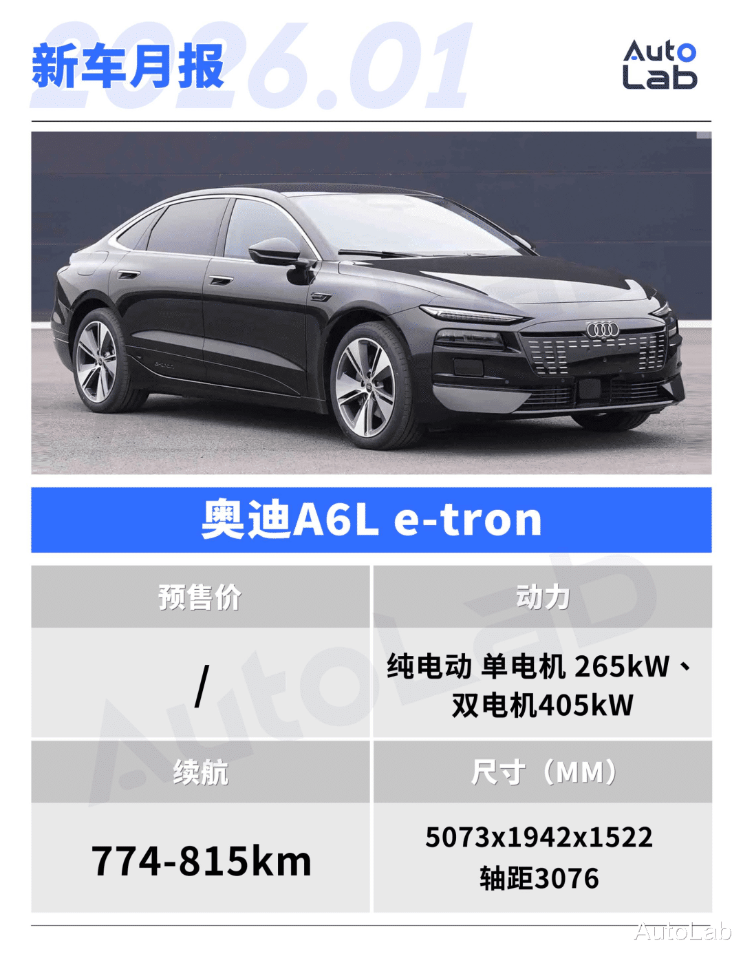 除了全新的Q5L,预热已久的奥迪A6L e-tron也有望在1月迎来上市。