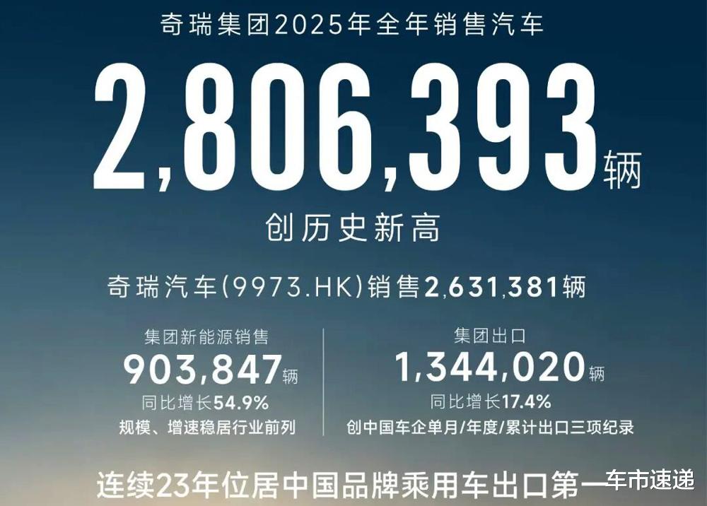 2025年奇瑞集团全年累计销量超过280万台,无论是海外出口还是新能源汽车,都创下了年度销量新高度。2026年奇瑞集团还会有哪些惊喜呈现,我们拭目以待。