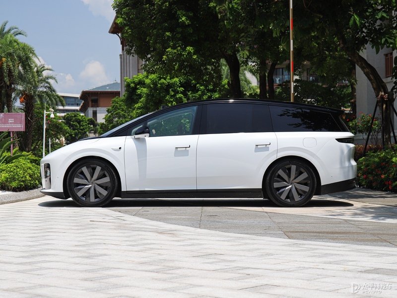 车身侧面,理想i8采用跨界的造型,风格趋向于理想MEGA这种MPV,配备更大角度倾斜的前风挡玻璃,并采用溜背式设计,这样的设计是追求更低风阻系数,仅为0.218Cd,但会牺牲掉一点颜值,这也是其颇具争议的地方。作为对比,小米YU7风阻系数为0.245Cd,乐道L90风阻系数为0.25Cd。