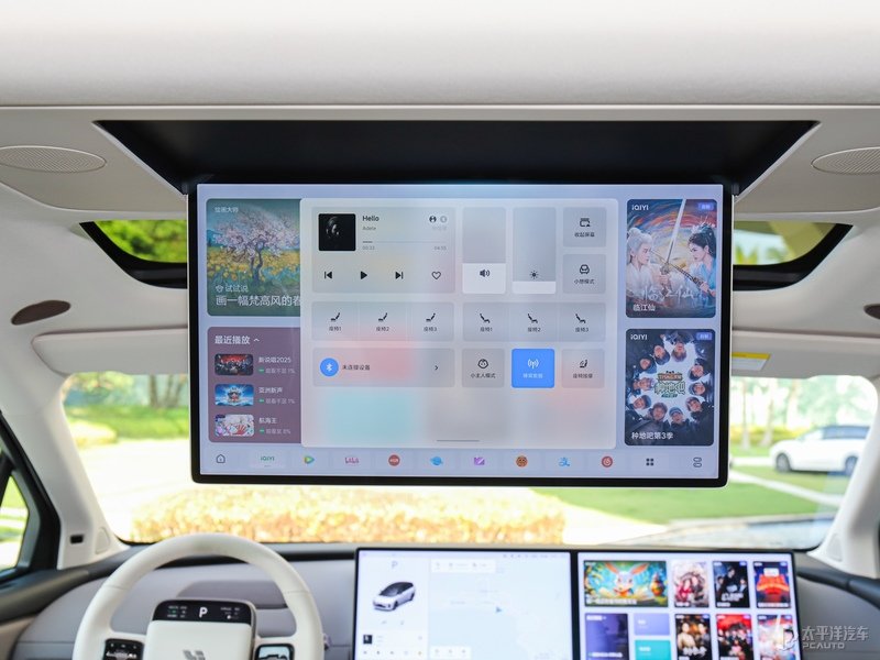 内饰方面,理想i8并没有采用全新设计,而是延续了理想品牌的家族式风格,经典的“套娃”设计,采用由15.7英寸中控屏与15.7英寸副驾娱乐屏组成的双联屏布局,配备四辐式方向盘搭配怀挡式换挡,上面配有4.82英寸液晶仪表,能够显示行车信息、续航信息、时间日期、温度等。