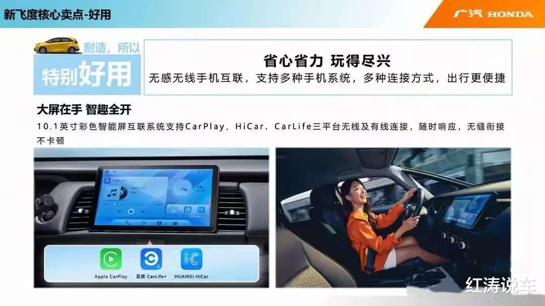 2026款飞度的中控台布局和现款车型保持一致,前排留有多个开放式储物槽,还有一些储物空间的设计也比较巧妙,像一些常用的小件物品,存放起来都很便利,各种功能操作起来触手可及,配备双色多功能方向盘和10.1英寸中控屏,支持Carplay、HiCar、CarLife三平台无线以及有线连接,实现随时响应、无缝衔接不卡顿。