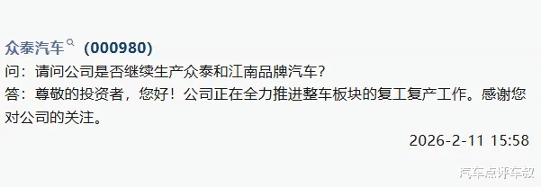 最近,众泰汽车算是又回到了大众的视野里。这回不是因为什么“皮尺部”的段子,也不是因为车主维权,而是众泰汽车在投资者互动平台上确认,公司正在全力推进整车板块的复工复产。