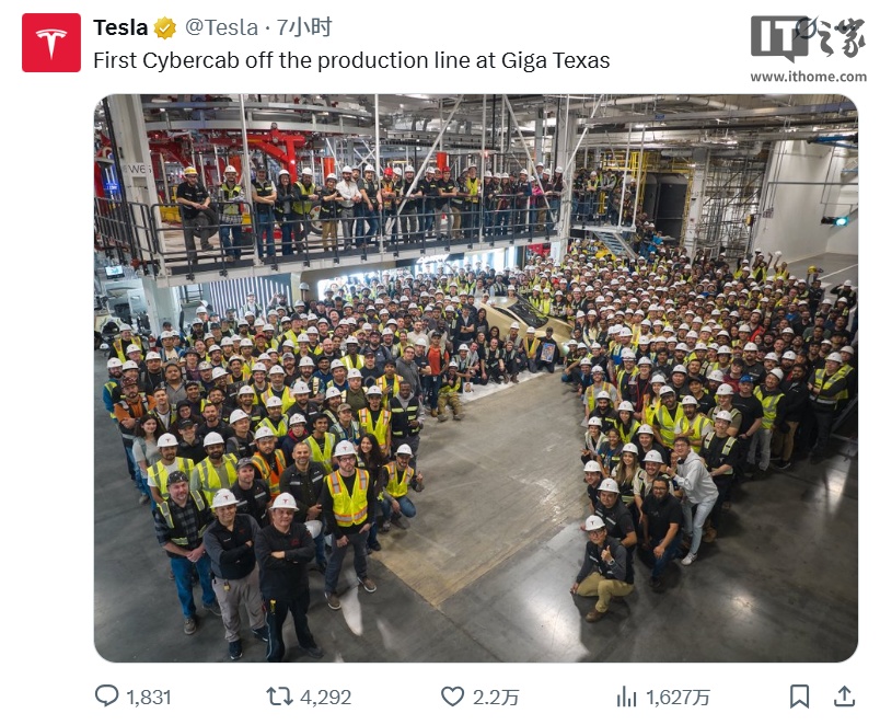 “祝贺特斯拉团队造出第一台量产版Cybercab!”特斯拉首席执行官埃隆·马斯克在X平台上表示。