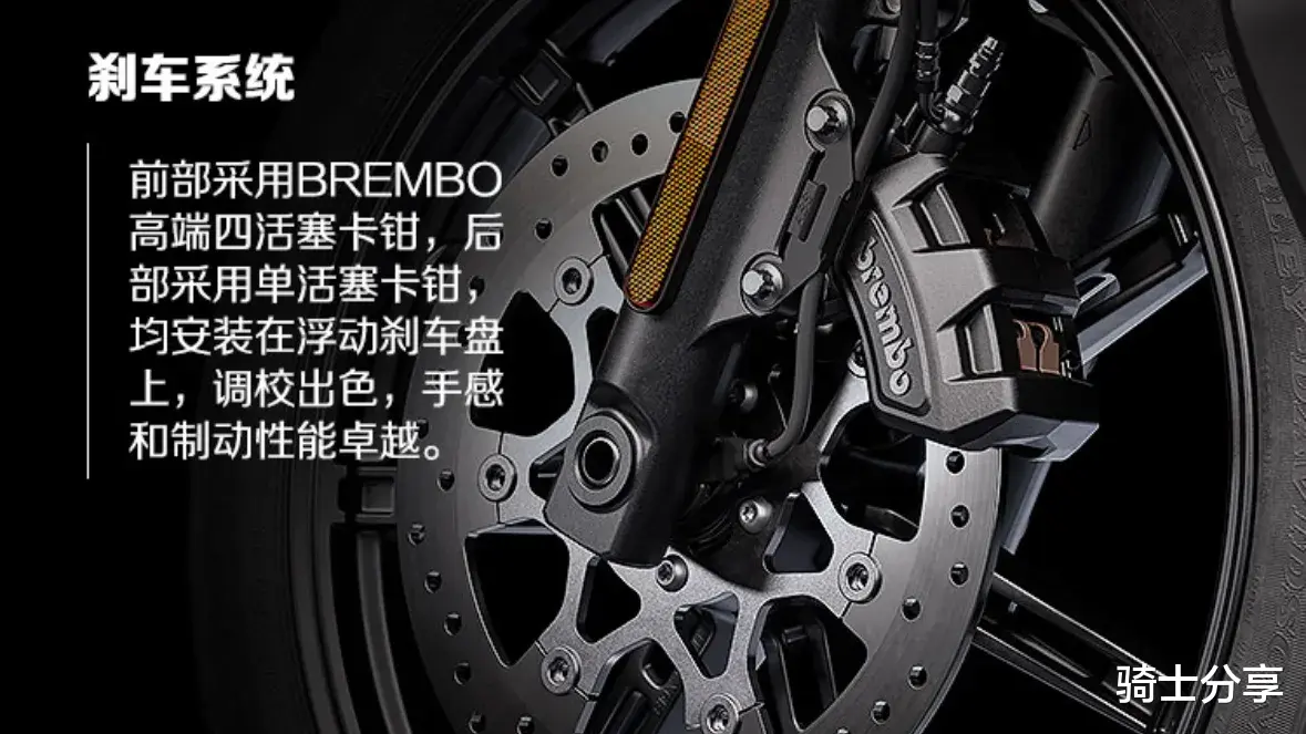 在配置层面,2025款哈雷夜行者也有它丰富的一面,该版本配套有全车LED灯组、四英寸组合式LCD仪表、电子油门、多种动力模式、Brembo四活塞卡钳、浮动刹车盘、双通道ABS、弯道ABS、TCS牵引力控制、预载可调后减震、邓禄普轮胎等等。