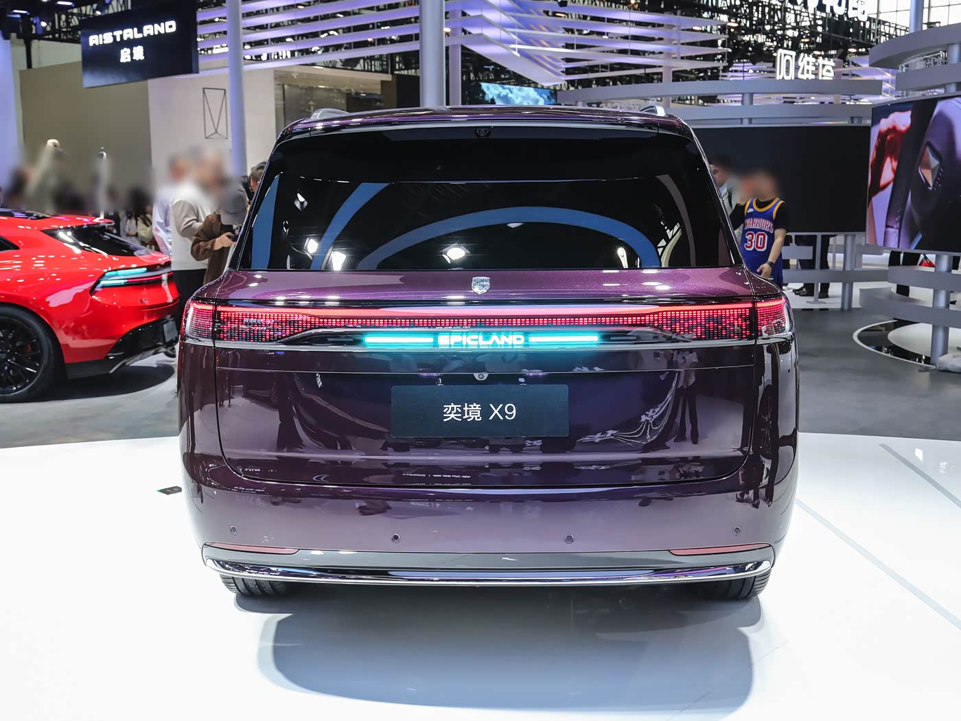 再来看车尾部分,奕境X9的设计延续了整体的简约风格。贯穿式尾灯与车头日行灯相呼应,内部的“Y”型图案再次强化了品牌辨识度,点亮后如同夜空中的星河,璀璨夺目。上翘的鸭尾设计不仅提升了空气动力学性能,更增添了几分运动气息。后保险杠下方的镀铬装饰条与车头相呼应,提升了车尾的精致感。隐藏式排气布局的运用,让车尾造型更加简洁干净,符合家用MPV的定位。后备箱采用了电动尾门设计,方便用户取放物品,同时也提升了车辆的档次感。