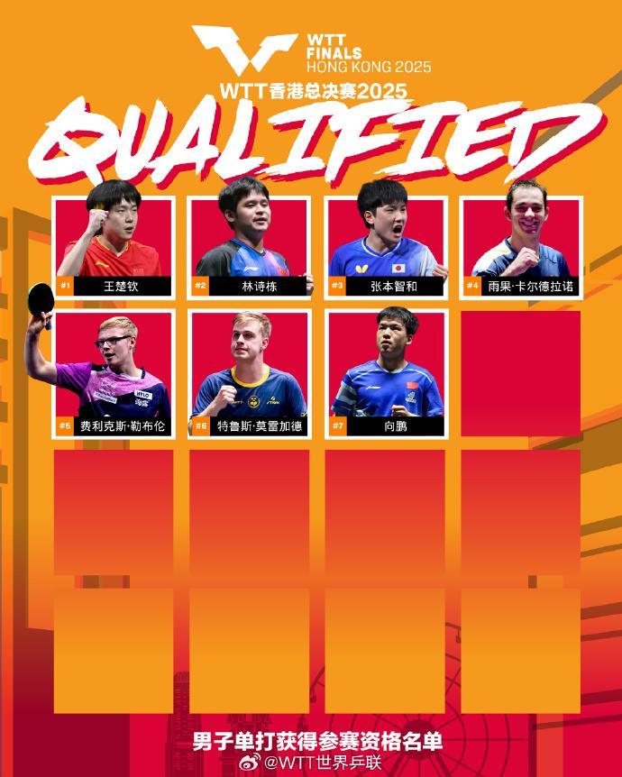 WTT香港总决赛参赛资格名单公布 国乒多人入选 作者: • 更新时间:2025-10-07 23:30 • WTT世界乒联发布截至目前获得2025WTT香港总决赛参赛资格的名单,国乒多人入选,加油!女单:孙颖莎、王曼昱、陈幸同、蒯曼、陈熠、王艺迪男单:王楚钦、林诗栋、向鹏混双:林诗栋/蒯曼 本文内容由互联网用户自发贡献,该文观点仅代表作者本人。如发现本站有涉嫌抄袭侵权/违法违规的内容,请发送邮件至 203304862@qq.com 本文链接:https://www.jinnalai.com/jiaodian/781023.html
