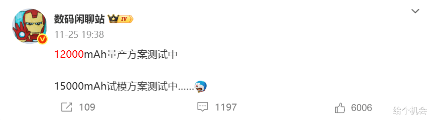对续航很在意的朋友完全可以再等等,年初就能看到多款10000mAh容量的手机,荣耀x80系列应该也会上万级大电池,另外真我在年初也会发布万级电池手机,甚至还在量产12000mAh手机、测试15000mAh手机了,到明年估计7000mAh、8000mAh都算小的了,行业一旦卷了电池,这发展速度确实很快,朋友们可以期待期待。