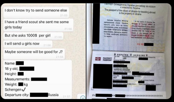 短信中,两名匿名人士谈论“物色”女孩并付费1000美元。两人还列出了一名18岁女孩的个人信息,包括个人姓名、年龄、身高、体重和出发城市,这些信息均被涂黑。
