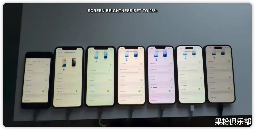 @iAppleBytes 在禁用了所有 iPhone 的自动亮度设置后,统一将亮度调至 25%。