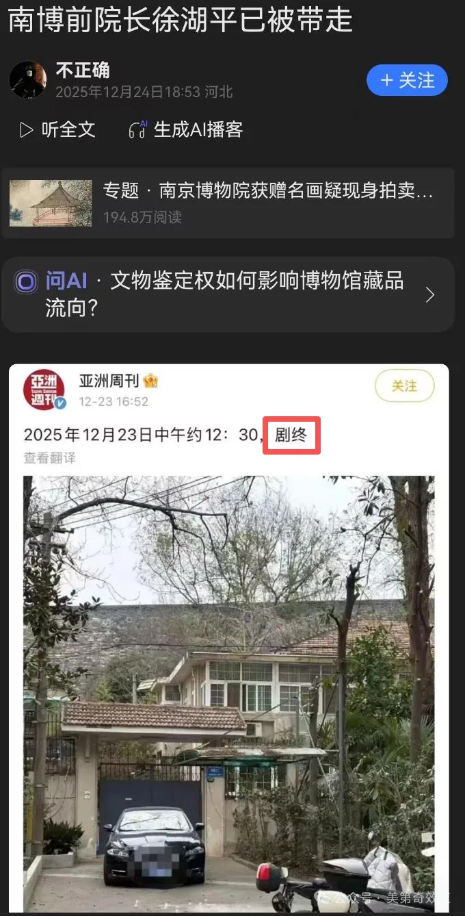 而这位广美院长为啥这么快落网?他这画都是落进自己口袋,抓起来当然毫无难度。而南博的徐院长,“狸猫换太子”的手法肯定差得远,但情商上那是高的多了。
