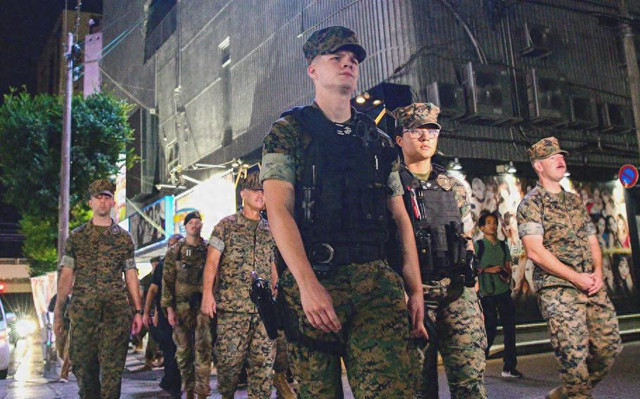 驻日美军在冲绳街头巡逻(美国《星条旗报》)