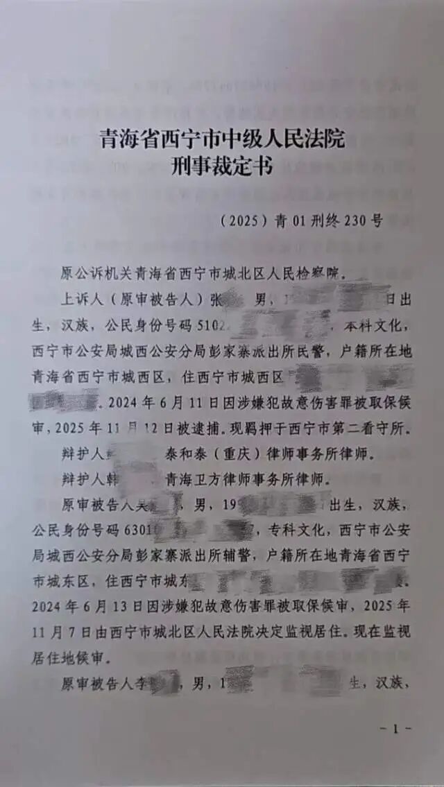 2025年11月12日上午,青海西宁市城北区人民法院对孙先生被民警辅警殴打一案公开宣判,3名民警辅警均因犯故意伤害罪获刑:其中涉案的民警张某被判有期徒刑8个月,立即执行;两名辅警被判有期徒刑8个月、缓刑一年。