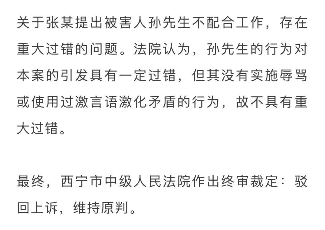 据华商报大风新闻,近日,青海省西宁市中级人民法院就孙先生被民警张某及两名涉案辅警殴打一案作出终审裁定,驳回上诉人张某的上诉,维持一审原判。