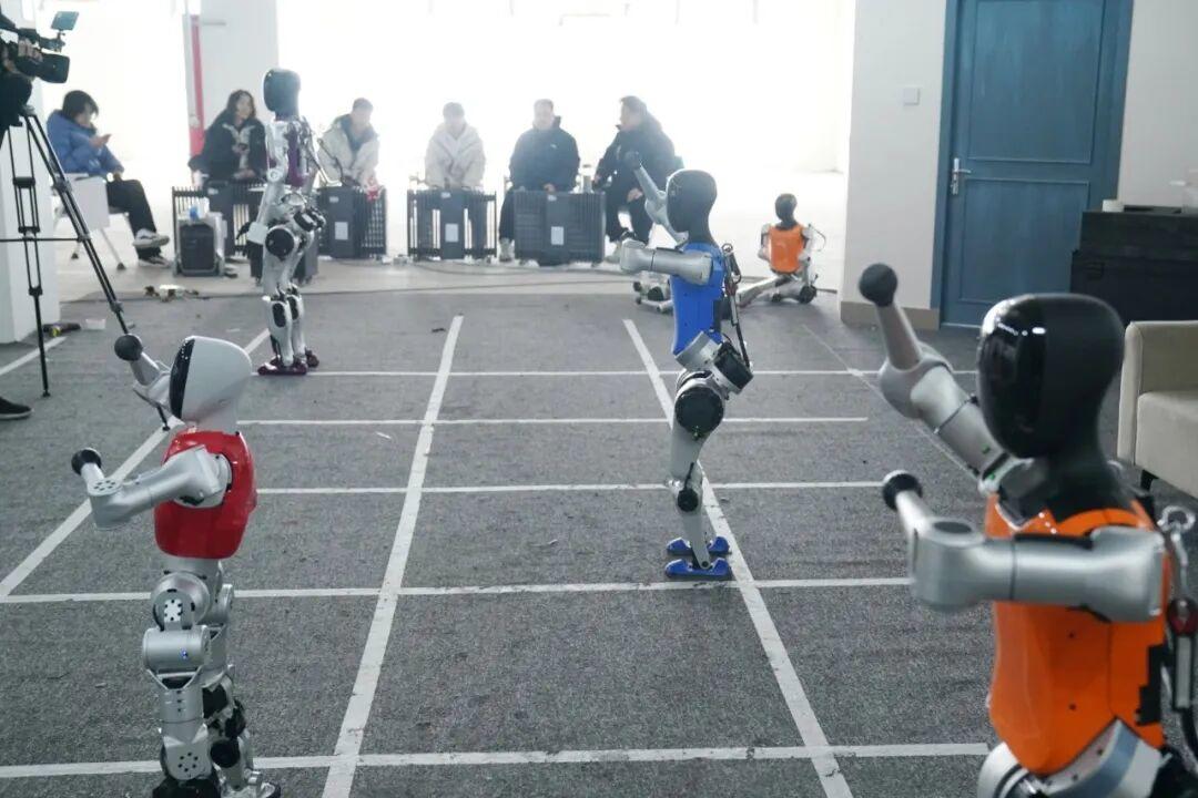 为了让机器人的动作更具差异化,团队在细节上反复雕琢,一个“大笑”的动作,都经历了多次打磨。最初设计的捂嘴笑,彩排后显得平淡无奇;修改后的前仰后合,放在“小布米”上合适,但其他机器人一起做又少了些特色。团队成员们开始搜集各种大笑的表情包,围坐在会议室一起讨论。就在思路陷入瓶颈时,公司创始人突然起身,做出了一个捶腿顿足的大笑动作,逗得众人捧腹。“就它了!”一声欢呼,这个生动又有趣的动作被快速落地实现。