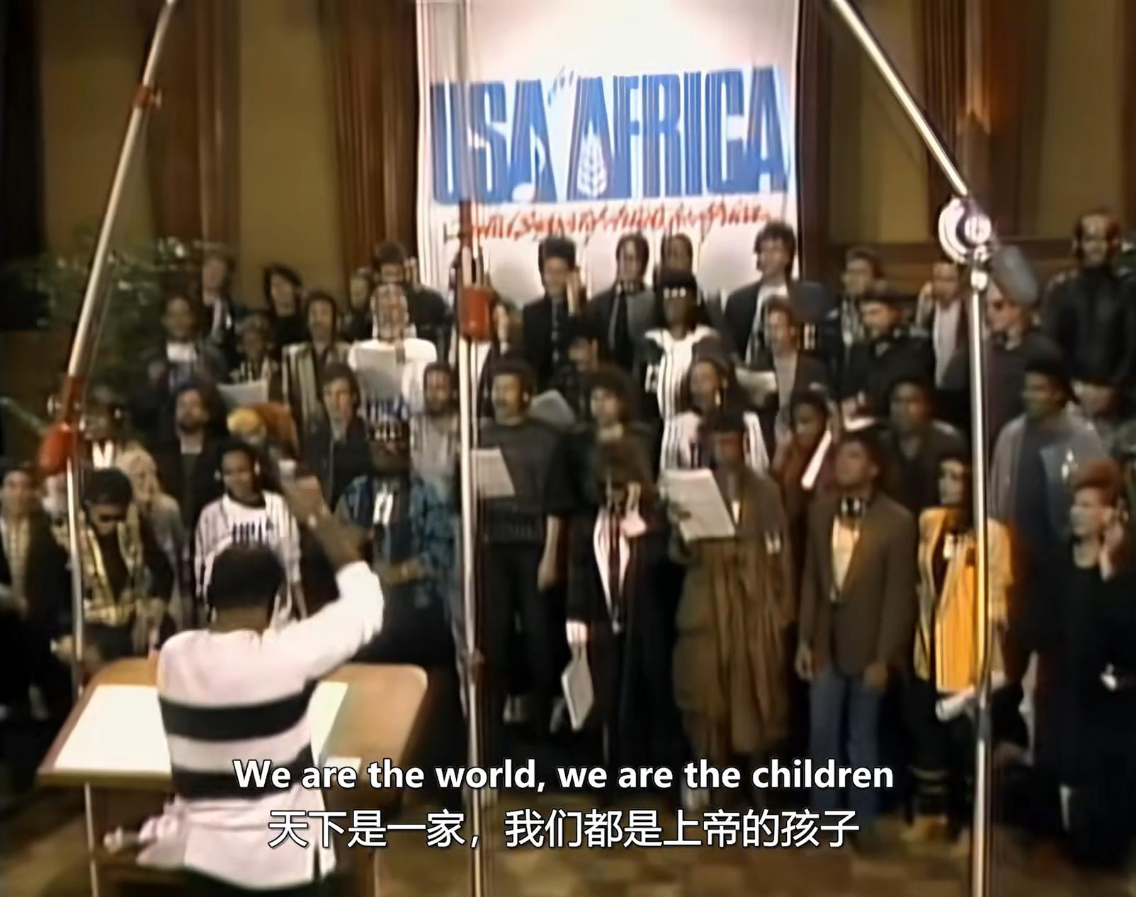 随后,他们召集了包括鲍勃·迪伦、蒂娜·特纳、布鲁斯·斯普林斯汀在内的45位美国顶级歌手,在录音室里通宵录制。那是一个美国文化如日中天的年代,那一句“Wearetheoneswhomakeabrighterday”,带着一种“天选之子”般的自信,向世界传递着爱与希望。这首歌最终为非洲筹集了超过6000万美元的善款,获得了格莱美四项大奖,也成了人类群星闪耀时的一段佳话。