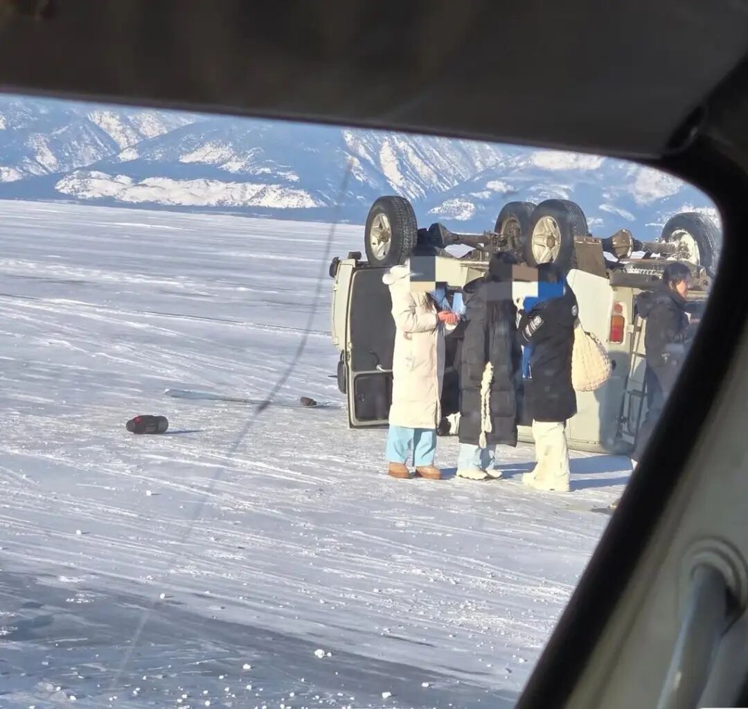 28日上午10点38分许,同样在贝加尔湖旅游的安先生看到了已经翻倒在冰面上的事故车辆。安先生回忆,“当时应该是刚翻车不久,下车的乘客还有些惊魂未定”。