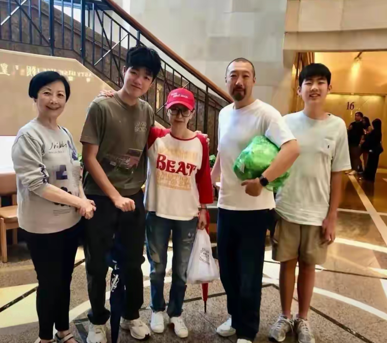 但说实话,我一点都不觉得违和,反而觉得格外接地气。照片里的他,穿着简单的白色短袖、黑色休闲裤,脚上是普通的运动鞋,没有名牌加持,没有豪门老板的架子,站在儿子们身边,就像个普通的中年老爸,一脸憨厚,低调又踏实。网友调侃“岁月对老公下手太狠,对陈慧琳却手下留情”,可在我看来,这份不加修饰的真实,才是婚姻最好的样子——不用刻意维持颜值,不用伪装完美,在爱人面前,能坦然展现最真实的自己。