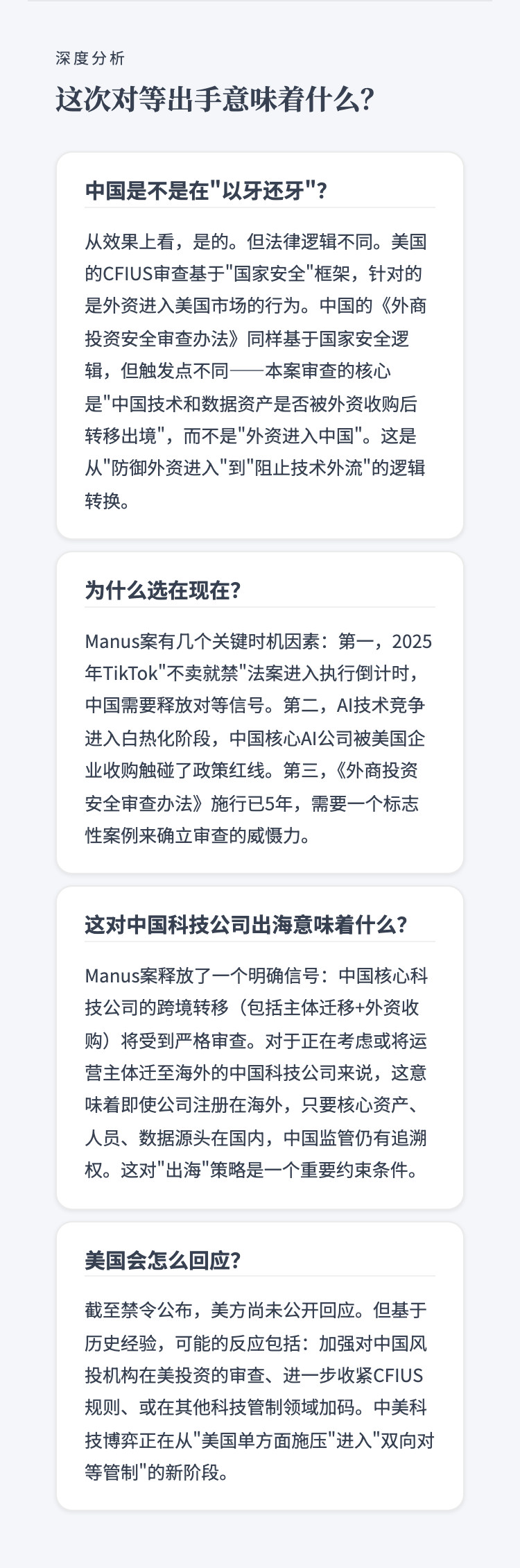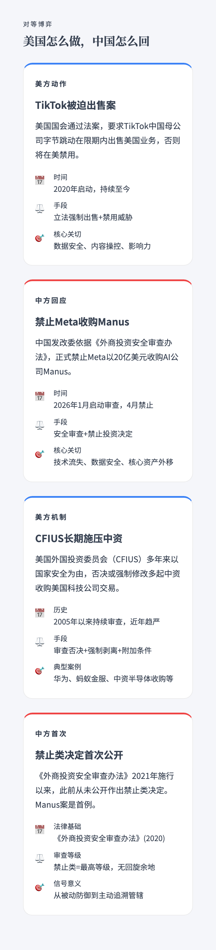 从TikTok到Manus,美国卡了中国科技公司十年,这次中国第一次对等出手,什么信号? 作者: • 更新时间:2026-04-29 10:30 • 本文内容由互联网用户自发贡献,该文观点仅代表作者本人。如发现本站有涉嫌抄袭侵权/违法违规的内容,请发送邮件至 203304862@qq.com 本文链接:https://www.jinnalai.com/jiaodian/825719.html