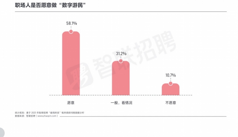 南都讯记者蒋小天12月19日,智联招聘发布了一份揭示2025年最新雇佣关系趋势的调研报告。这份报告指出,当前“反内卷”已成为职场新共识,调研中近8成职场人会因“内卷”而考虑跳槽,近6成职场人渴望掌握自主和自由,愿做“数字游民”。