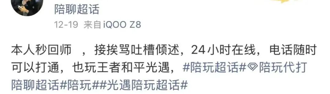秒回师的核心业务,是在指定时段内为客户提供微信、电话、视频等即时回应服务,扮演倾听者的角色。不同于传统客服的标准化回复,他们的服务核心是情感价值的精准供给。