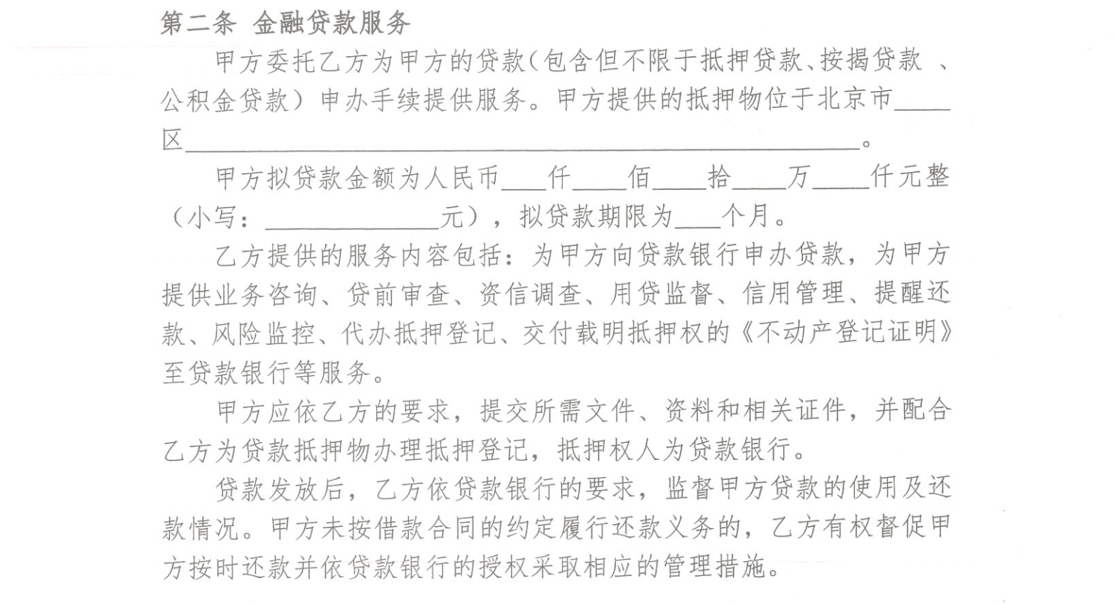 而为避开监管,助贷公司显得十分谨慎,有关过户公司、虚假交易部分均未在借款人与贷款中介签署的合同中明文规定。