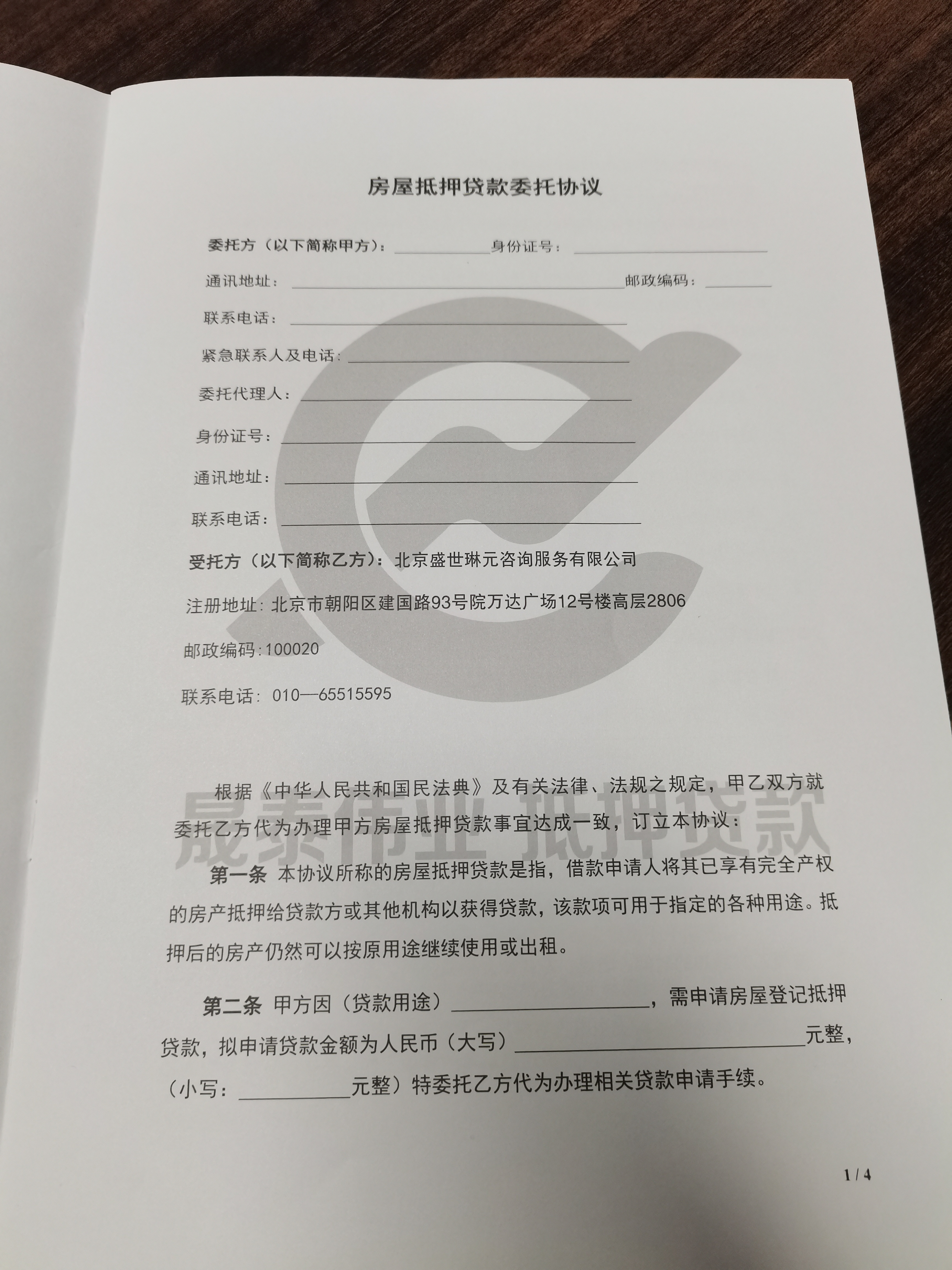 盛世琳元提供的抵押贷款委托协议。新京报贝壳财经记者摄