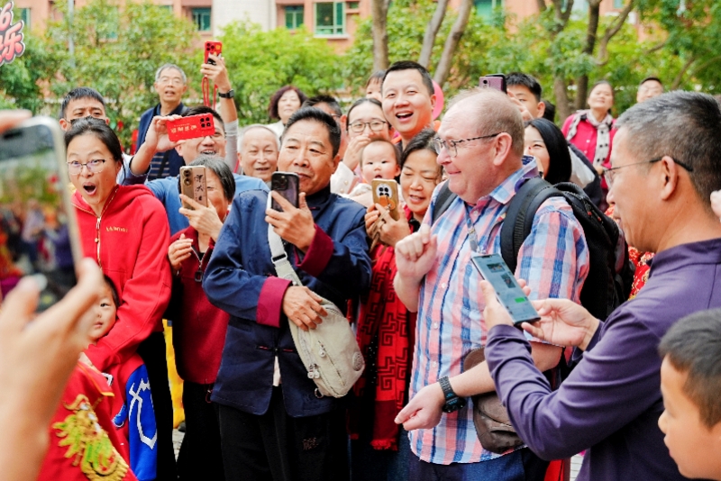 在梅林担任外教老师的英国人AndrewWilliam也成为了这次巡游的观众。“中国的新年真热闹,舞龙、舞狮,还有有趣的变脸,活动真是缤纷多彩。”AndrewWilliam激动地竖起大拇指,“我来深圳十年,其中,在梅林就已经九年了。深圳很棒,在这里生活非常幸福。”“来了就是深圳人”的含金量在此刻再次具象化。这份跨越国界的归属感与文化共鸣,恰逢其时地为即将到来的2026年APEC会议埋下了温暖的伏笔。作为全球经济治理的重要平台,APEC汇聚世界目光,而深圳作为中国改革开放的前沿窗口,其包容开放的姿态本身就是一张亮丽名片。梅林街道这场新春巡游,无意间成为了一次生动的“民间外交”预演——它以中国年俗为载体,向世界展示了中华优秀传统文化强大的生命力与感召力。