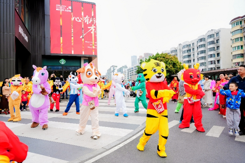 与往年不同,今年的巡游路线特意“绕”进了梅林安荟邻商圈等商业节点。花车在商场前停驻,舞龙队在市集边翻飞,奶茶店门口成了十二生肖舞蹈的舞台——文化与消费的碰撞,迸发出意想不到的火花。