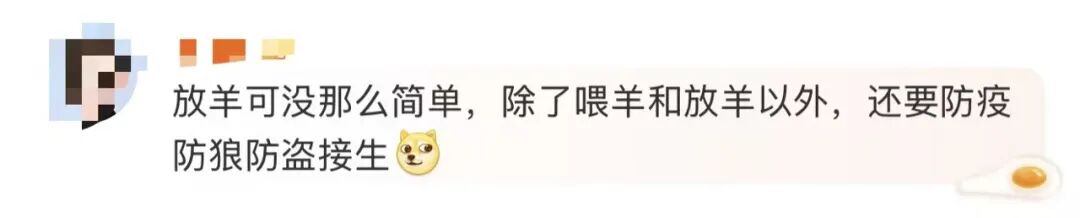 对于“放羊工”工作的走红,有媒体评论称——这些话题在给职业赋予浪漫想象的同时,我们也不要忽略了职业的本质:它首先是谋生的手段,其次才是生活的选择。你看到“放羊看云”的诗意,也不要忘记长期孤独的心理承受力和牧场管理的实际难度。