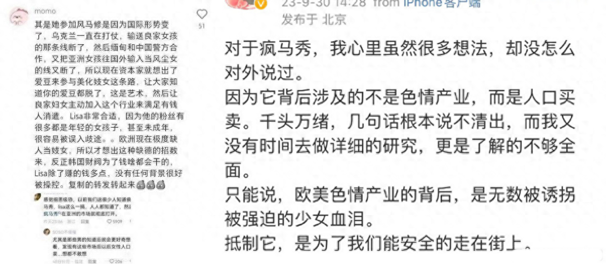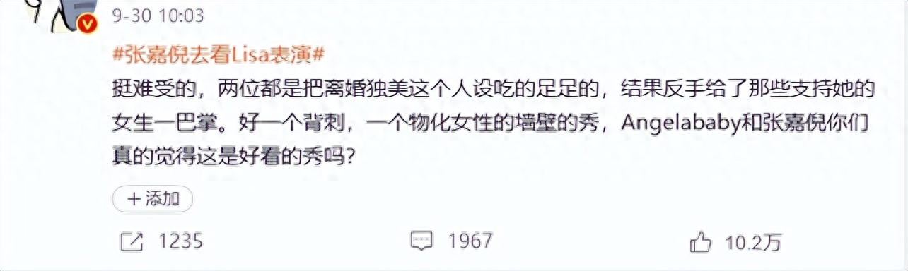 而Lisa这一行为也被很多清醒的网友认为是背刺女性。
