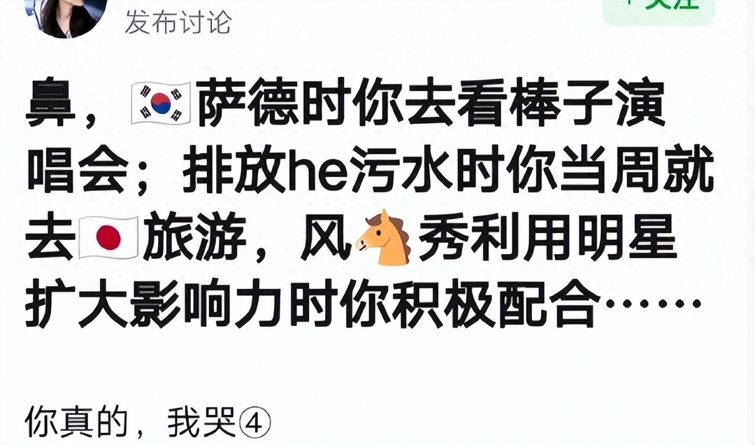 网友发现她太哈韩哈日了,而且很多时候都不合时宜的参加日韩明星的活动。