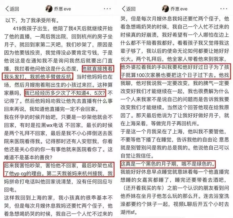 曝料自己在月子期间被家暴,而且还在这期间惨遭对方出轨等等。