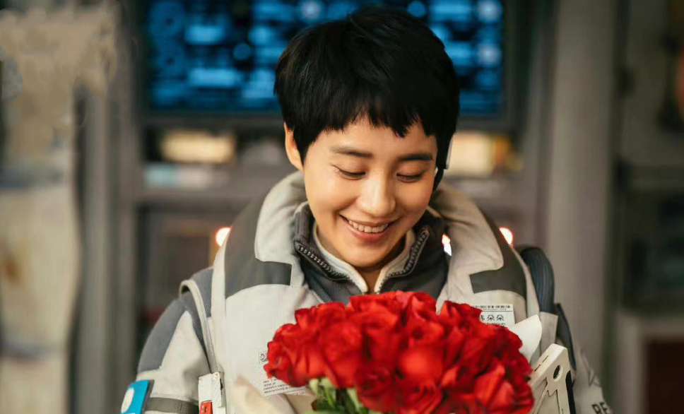 《流浪地球2》中,她饰演的韩朵朵以短发造型出场时,她刚毅飒爽,面对男主送来的玫瑰花,一拳砸碎玻璃,显得灿烂又洒脱。