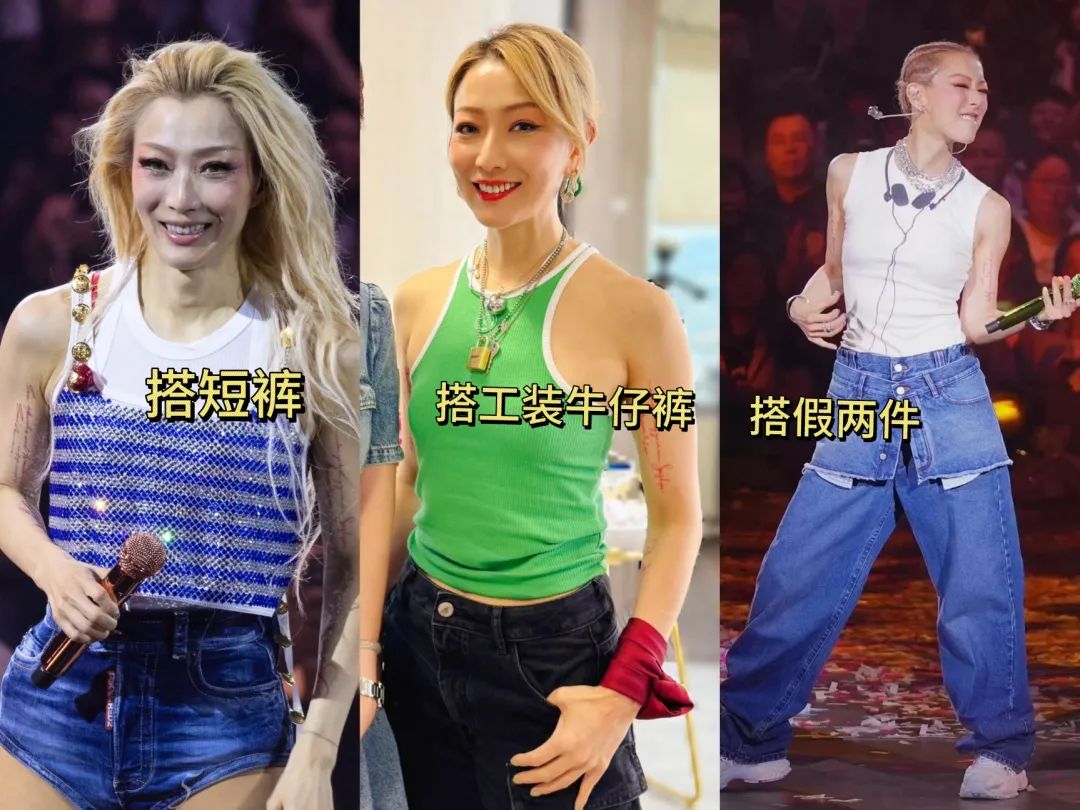 郑秀文是有名的健身狂人,她的肌肉线条流畅,身材比例优越,穿无袖背心更能凸显身材优势!在演唱会上,黑色无袖背心搭黑色高腰喇叭裤,年轻十岁!