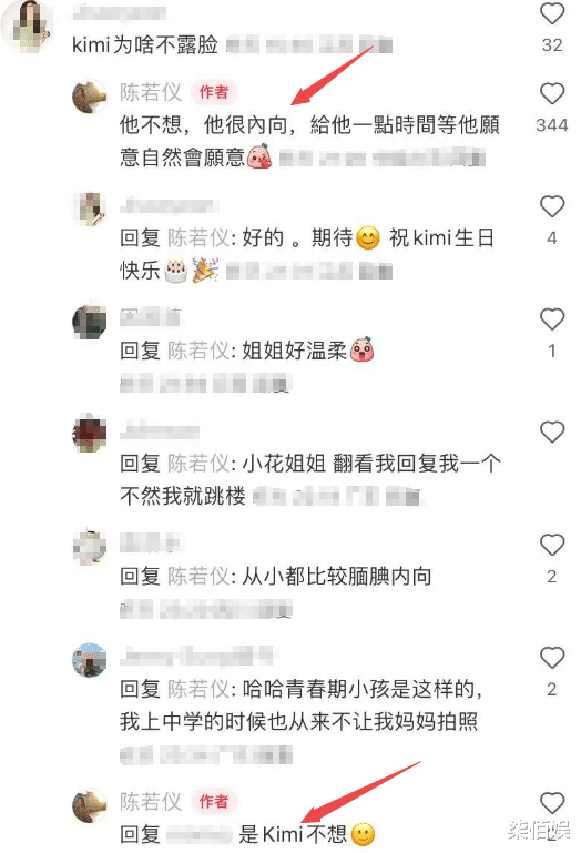 为此,这次在陈若仪为Kimi庆生动态下,有网友再次询问:“Kimi为啥不露脸”,没想到陈若仪竟然正面回应了。