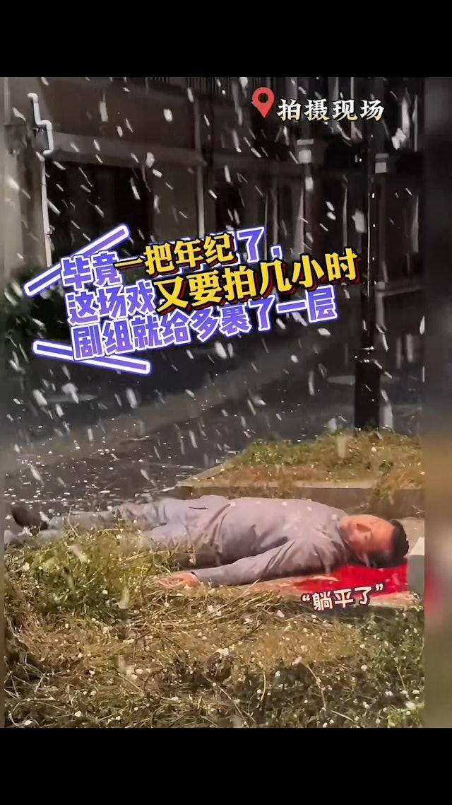 不过为了保护他的身体,在他身上缠满保鲜纸,以免他被冻伤感染风寒。他也曾经在这个镜头拍完后表示“领完饭盒真的可以收红包,真是雪(血)汗钱啊。”最后,祝愿张国强事业越来越顺,身体健康!