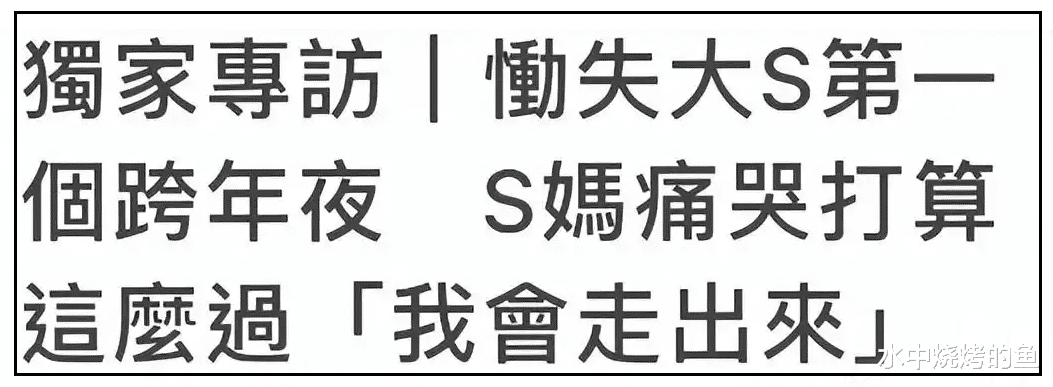 今年的跨年夜显得格外沉重,这是S家第一个没有大S的跨年夜,此前小S录制跨年宣传片时情绪失控,S妈在采访中听到没有大S的跨年夜时同样放声痛哭。她直言,一想到这件事,就会忍不住掉眼泪,自己会逐渐走出来的,谢谢大家的鼓励和支持。