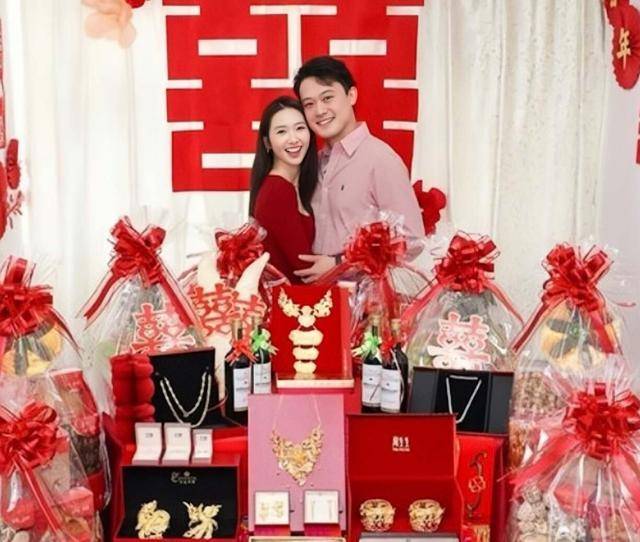 黄静蓝在社交媒体上,分享了几张过大礼的照片,桌上堆积的各种金器、海鲜等,也是引发了不少热议。
