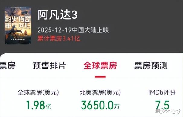 从目前《阿凡达3》票房走势看,全球15亿美元应该没有悬念,对于《阿凡达》系列不算太出色,但足以收回全部成本,从而保证《阿凡达4》的开发。