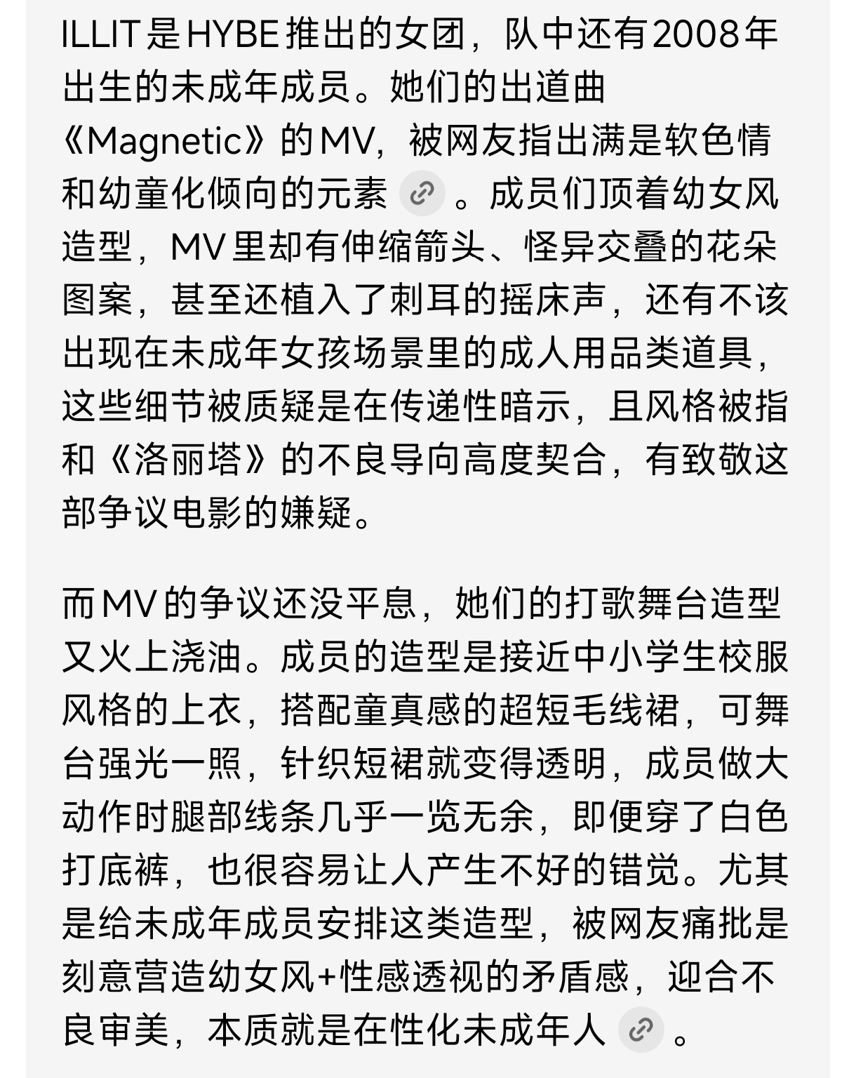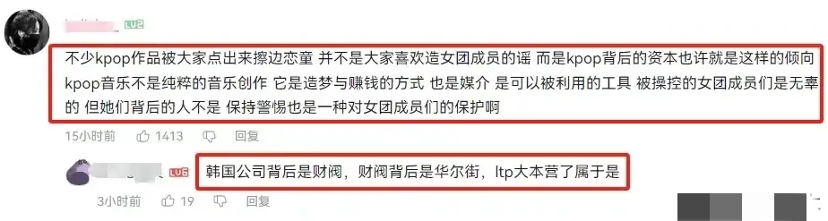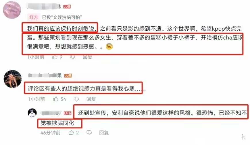 这种包装策略就是在不断的突破道德底线,把未成年人当作该公司的吸金招牌,用“幼态+性感”的擦边组合试探社会公序良俗,不少人都谴责HYBE是为了商业利益,无视对未成年成员的保护,也在败坏韩娱的行业风气 。