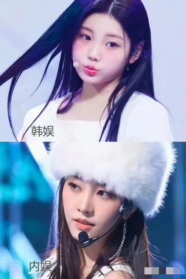 我们再对比一下上面的图片,而她们其实仅仅相差一岁,可是发展风格却大不相同,内娱至少看起来像大学生,而韩娱直接向小学生方向看齐了。