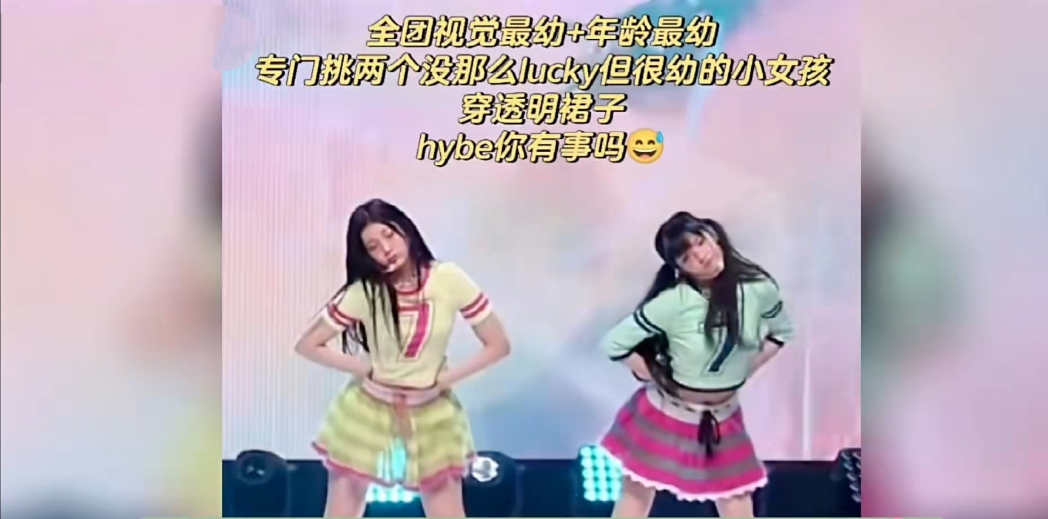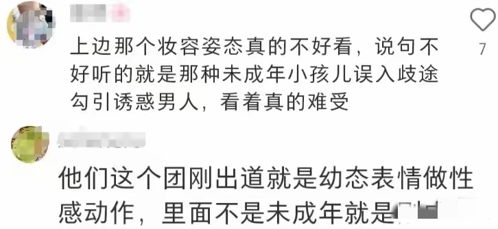 该女团主打的就是幼态女孩风格,如果是正常的舞蹈表演,其实大家也是欣然接受的,但其就是不按正常套路来,喜欢剑走偏锋,于是呈现给大家的画面的各个角落都充斥着X暗示元素,如毫无理由出现的大人,用品,公司要求女团成员穿较“大胆”透明的裙子,最关键的是该女团还有未成年成员。