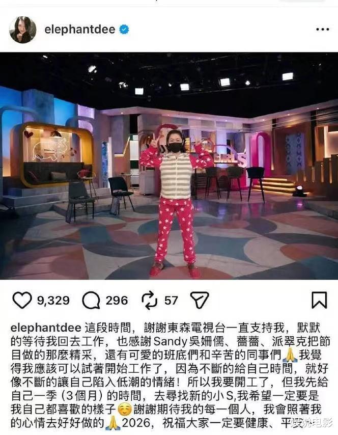 小S因为姐姐大S去世所以休息了一年多,应该是满血复工,她在社交账号发文。