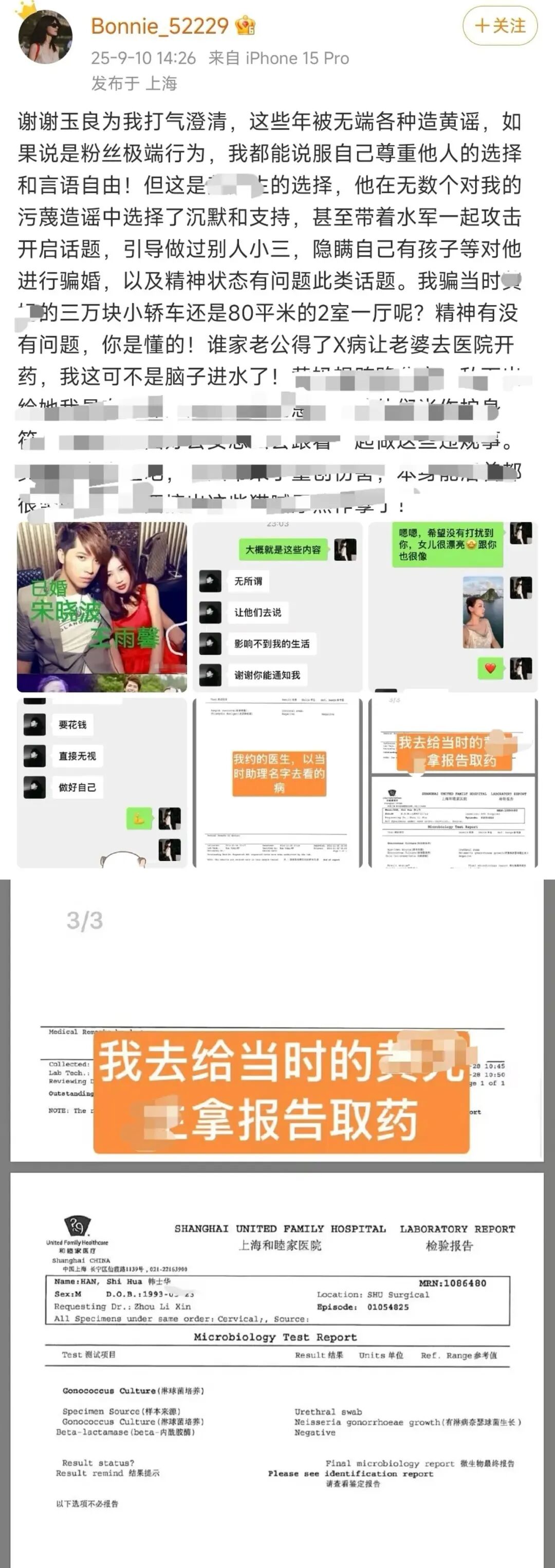 黄景瑜的前妻王雨馨和他在一起将近三年,手里握着他不少私密旧事。除了出轨、隐婚这些瓜,黄景瑜身上还有更劲爆的丑闻。25年9月10日,王雨馨在微博发文爆料,称黄景瑜患有脏病,不敢用自己身份就医,用助理的身份去看病,甚至想让王雨馨帮他拿病历。王雨馨当时觉得事有蹊跷,留了个心眼,才摸清了里面的内情。